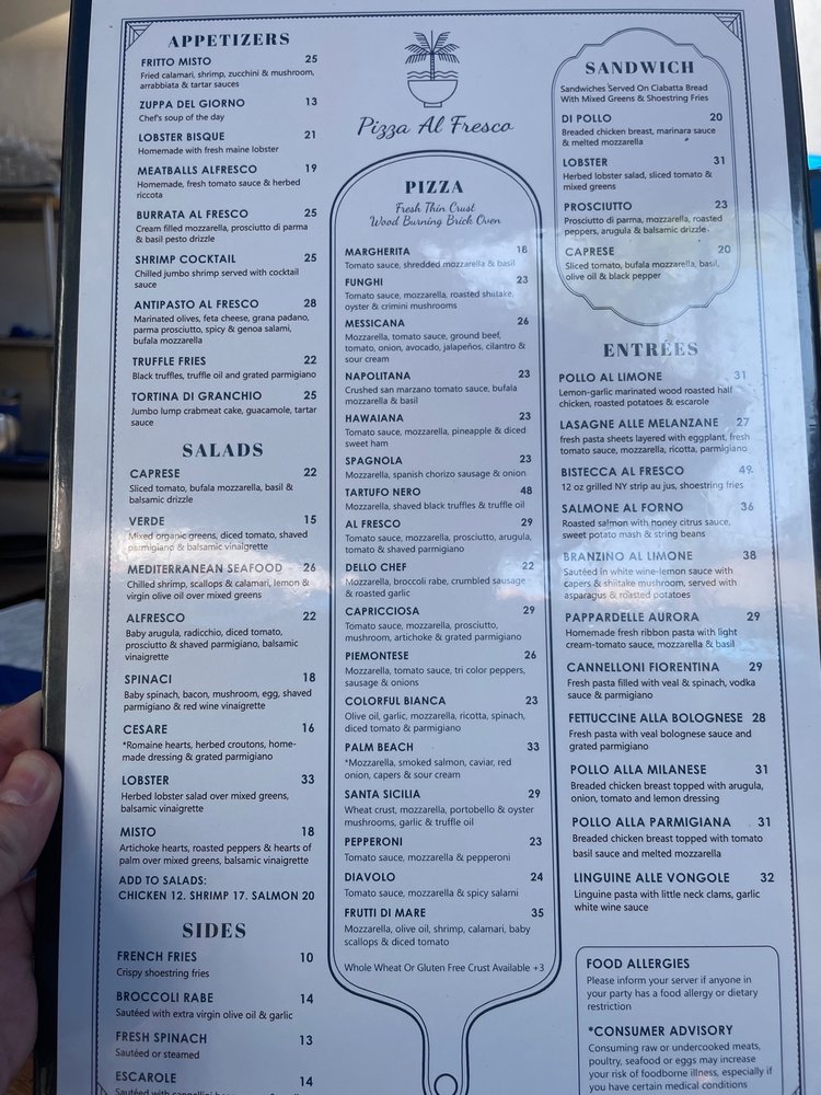 Overall, Pizza Al Fresco stands out for its exceptional quality, attentive service, and delightful ambiance. Whether you're a local or a visitor to Palm Beach, this restaurant is a must-visit for anyone craving authentic Italian cuisine in a charming setting.